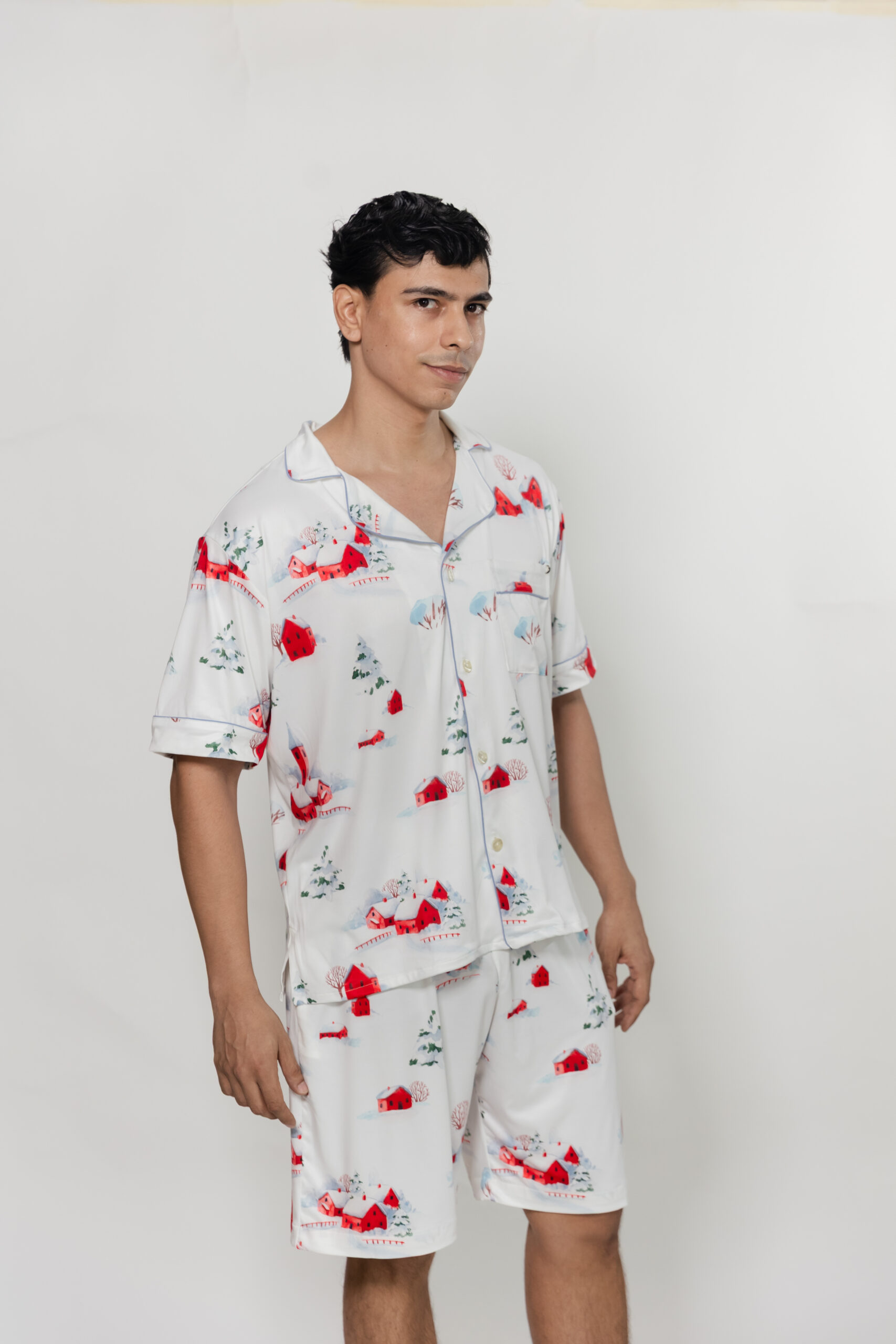 Nuestra pijama HOME es la elección perfecta para disfrutar de la magia de la Navidad con toda la familia. Con un estampado de casitas de navidad en un tejido de punto suave y acogedor, esta prenda es ideal para crear recuerdos inolvidables.