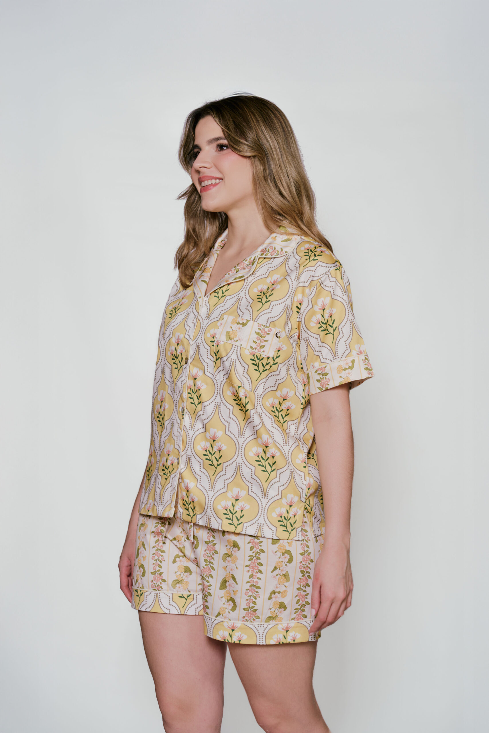 NUESTA PIJAMA MATCHA INSPIRADA EN EL AMARILLO QUE ES VIBRANTE Y NOS LLENA DE ENERGÍA, ES EL COMPLEMENTO PERFECTO PARA DESPERTAR CON UN TOQUE DE ALEGRÍA Y OPTIMISMO. ELABORADA EN TELA 100% ALGODÓN, TE BRINDA LA SUAVIDAD Y LA COMODIDAD QUE NECESITAS PARA UN DESCANSO REAL Y PLACENTERO.
