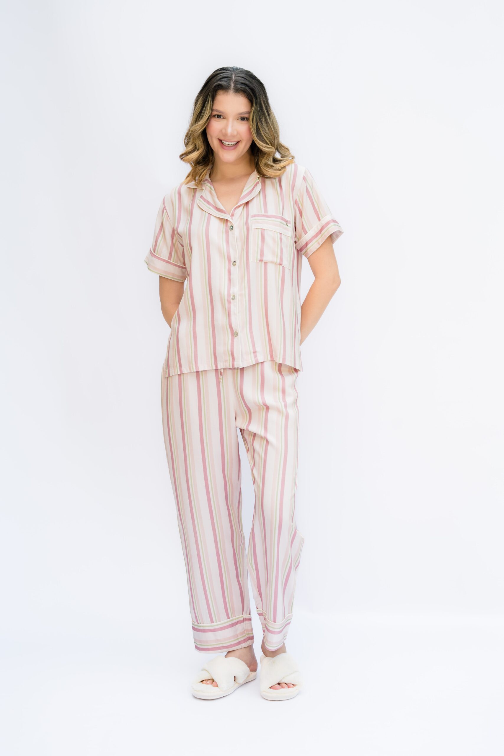 Estampado de rayas en colores pasteles, cl谩sico y femenino