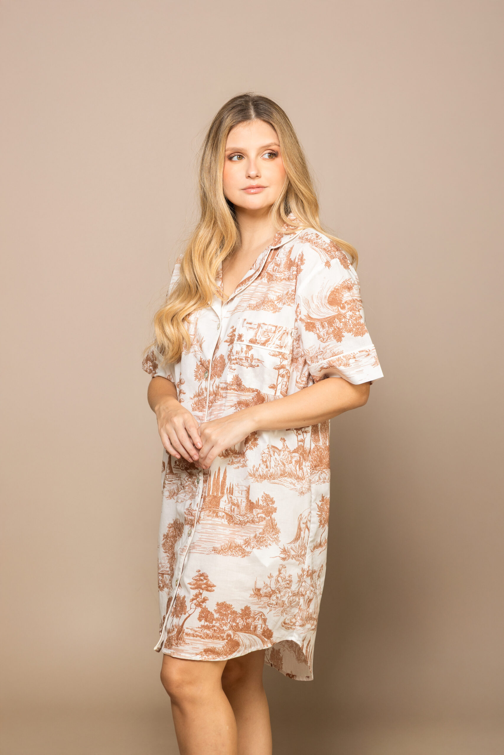 – Bata camisera de manga corta con botones