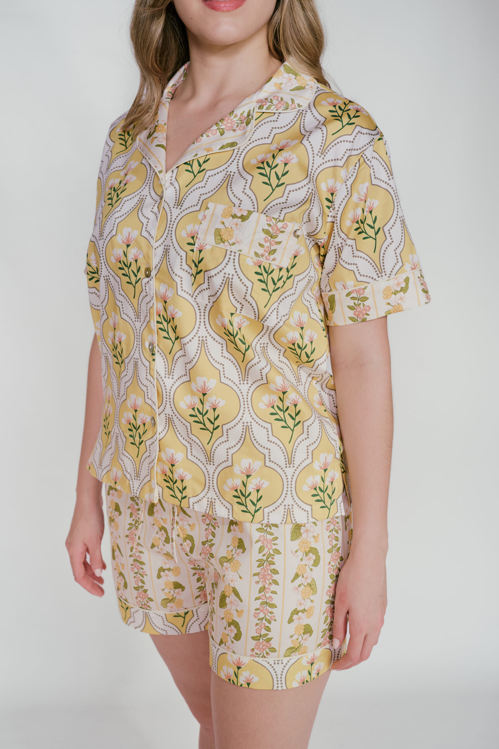 NUESTA PIJAMA MATCHA INSPIRADA EN EL AMARILLO QUE ES VIBRANTE Y NOS LLENA DE ENERGÍA, ES EL COMPLEMENTO PERFECTO PARA DESPERTAR CON UN TOQUE DE ALEGRÍA Y OPTIMISMO. ELABORADA EN TELA 100% ALGODÓN, TE BRINDA LA SUAVIDAD Y LA COMODIDAD QUE NECESITAS PARA UN DESCANSO REAL Y PLACENTERO.