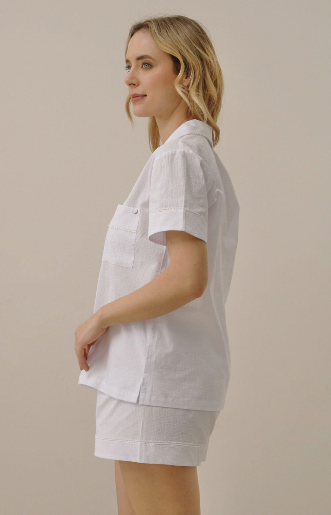 Nuestra pijama clásica Ref. Navy está confeccionada en algodón suave y transpirable, ideal para brindar frescura y confort durante toda la noche.