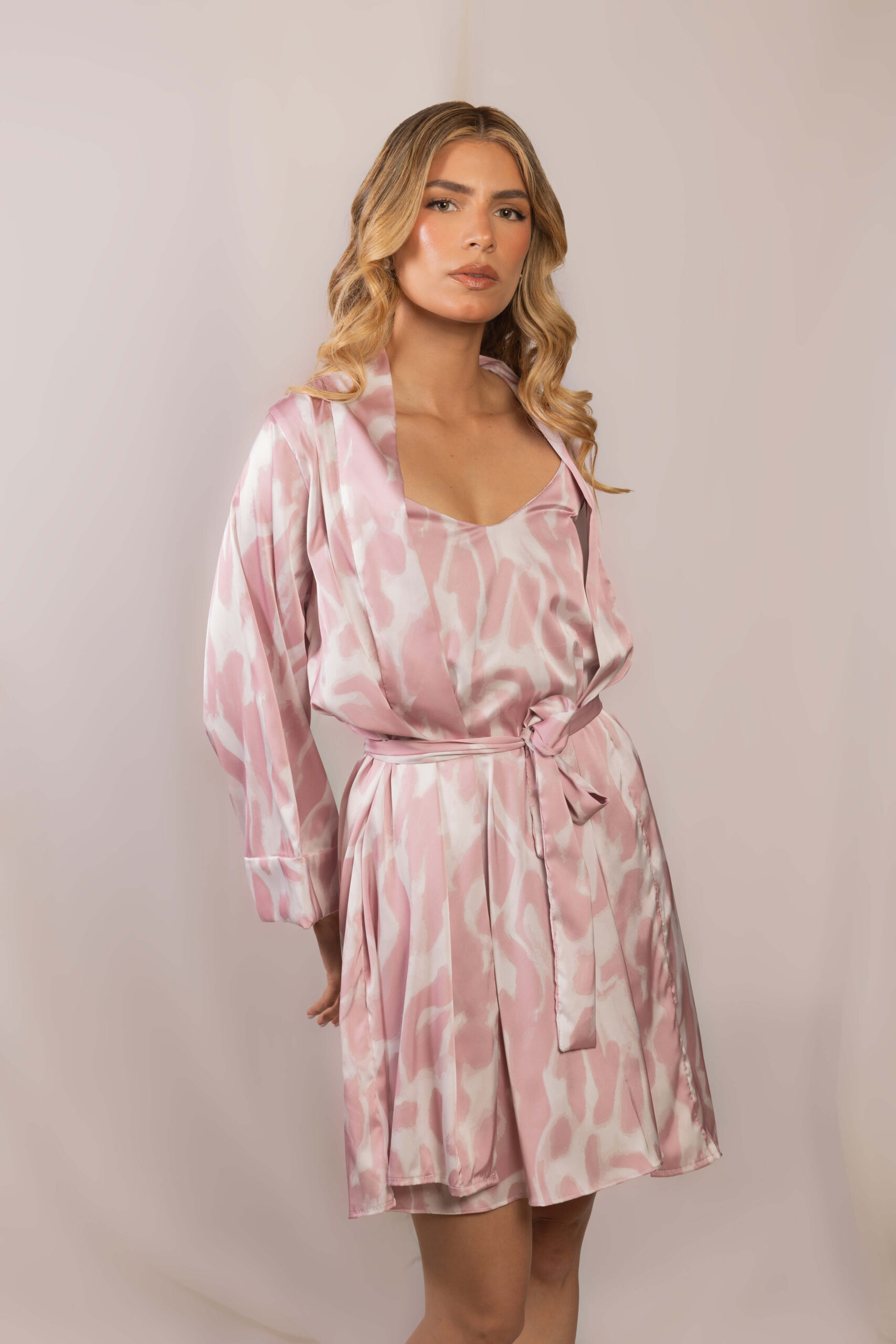 Pijama elaborada en tela tipo seda, ligera y suave con estampado unico y elegante que agrega un toque de sofisticación a tu rutina nocturna.